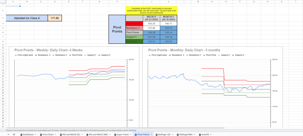 ✔ Support & Resistance – Bollinger Bands, Pivot Points, 20/30/50/200 DMA.
